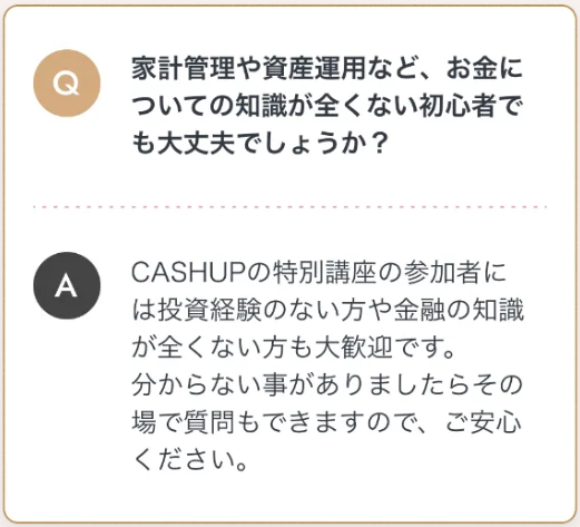 CASHUPの無料体験では、一人ひとりの状況や目標に合わせた内容で学べるのが特長だよ🫶