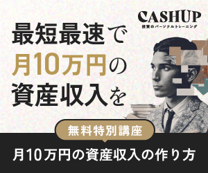 CASHUPとは、最短・最速で資産収入UPを目指せる「投資に特化したマンツーマンのトレーニング講座」だよ。